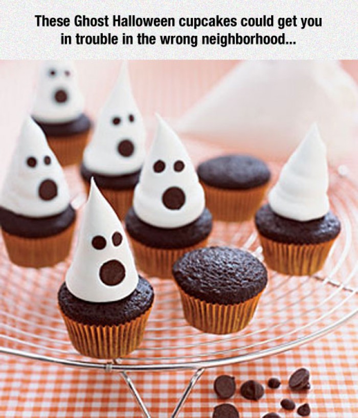 These Ghost Halloween cupcakes could get you in trouble in the wrong neighbourhood. Be careful when choosing your halloween decorations.