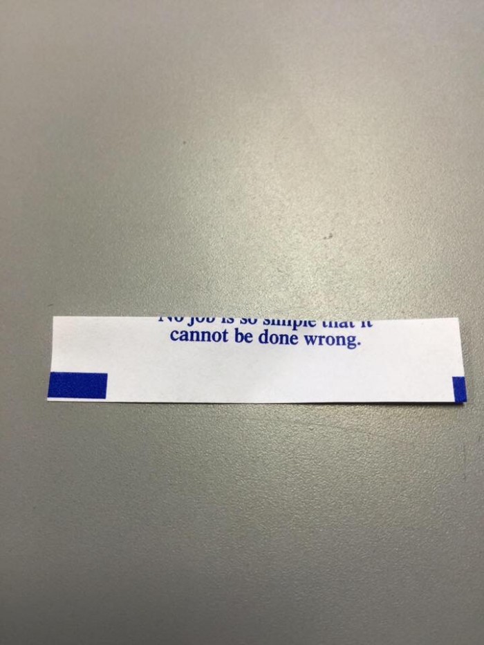 Fortune cookie - No job is so simple that it cannot be done wrong.